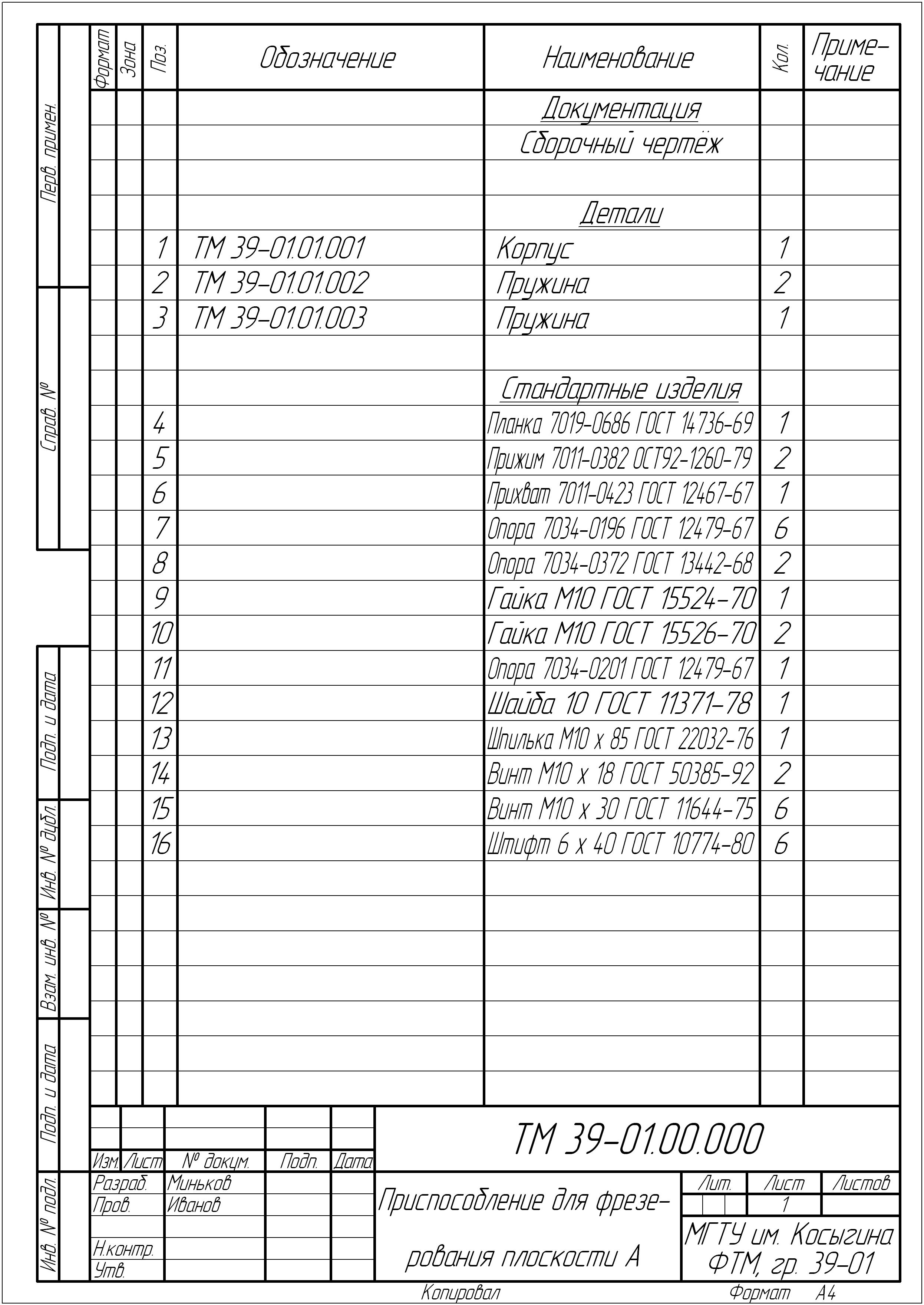 Применение станочных приспособлений расширяет технологические возможности металлорежущего оборудования, повышает производительность и точность обработки заготовок, облегчает условия труда рабочих и повышает культуру производства на предприятии. С помощью станочных приспособлений при механической обработке деталей решаются следующие основные типовые задачи: базирование и закрепление заготовок, координирование инструмента, изменение положения заготовки относительно оборудования. При проектировании станочного приспособления необходимо соблюдать правила выбора баз, стабильного взаимного положения заготовки и режущего инструмента при обработки, обеспечивать удобство установки, контроля и снятия детали, свободного удаления стружки, управления станком и приспособлением, а также условия безопасности работы и обслуживания данного приспособления. Назначение: специальное станочное приспособление предназначено для фрезерования поверхностей, торцевыми цельными твердосплавными и быстрорежущими фрезами по ГОСТ 16463-80. Расчёт сил зажима заготовки: