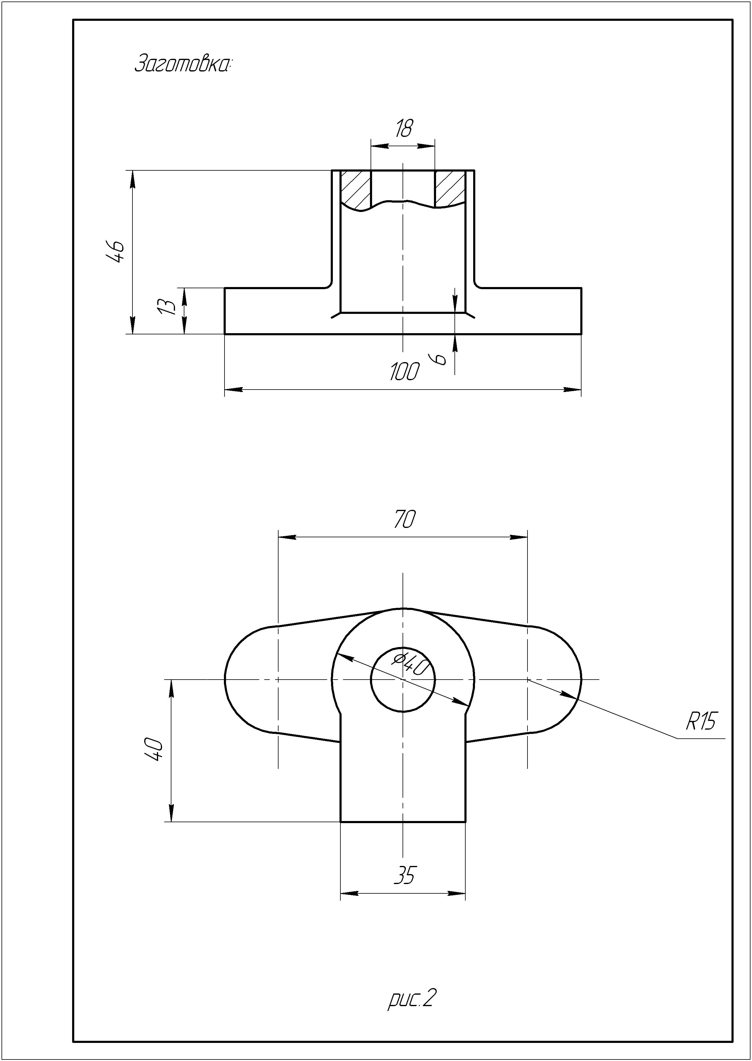 3.2 Расчёт общих и межоперационных припусков и размеров Обработку плоскостей А и Б производим торцевой фрезой на вертикально-фрезерном станке. Шероховатость этих плоскостей Ra=6,3 мкм., что позволяет их обрабатывать за один технологический переход. Заготовку получаем литьём в песчаные формы. Отливка средней сложности. По табл. 6.2 приложения 6 (методические указания) определяем класс точности размеров и ряды припусков. Класс точности размеров нашей отливки 7т, а ряды припусков 2...4. Так как отливка средней сложности, то принимаем 3-й ряд припусков. По классу точности размеров (7т) определяем допуск линейных размеров. В нашем случае Т=1,0 мм (метод., табл. 6.3, приложение 6). Затем по допуску и 3-му ряду припусков (по табл. 6.4 приложения 6) определяем припуск на обработку Z = 3 мм. Таким образом принимаем, что припуски на обработку плоскостей А и Б Z0 = 3 мм. Размеры заготовки приведены на рис.2. Заготовка представляет собой отливку ІІІ класса точности, массой 0,5 кг.