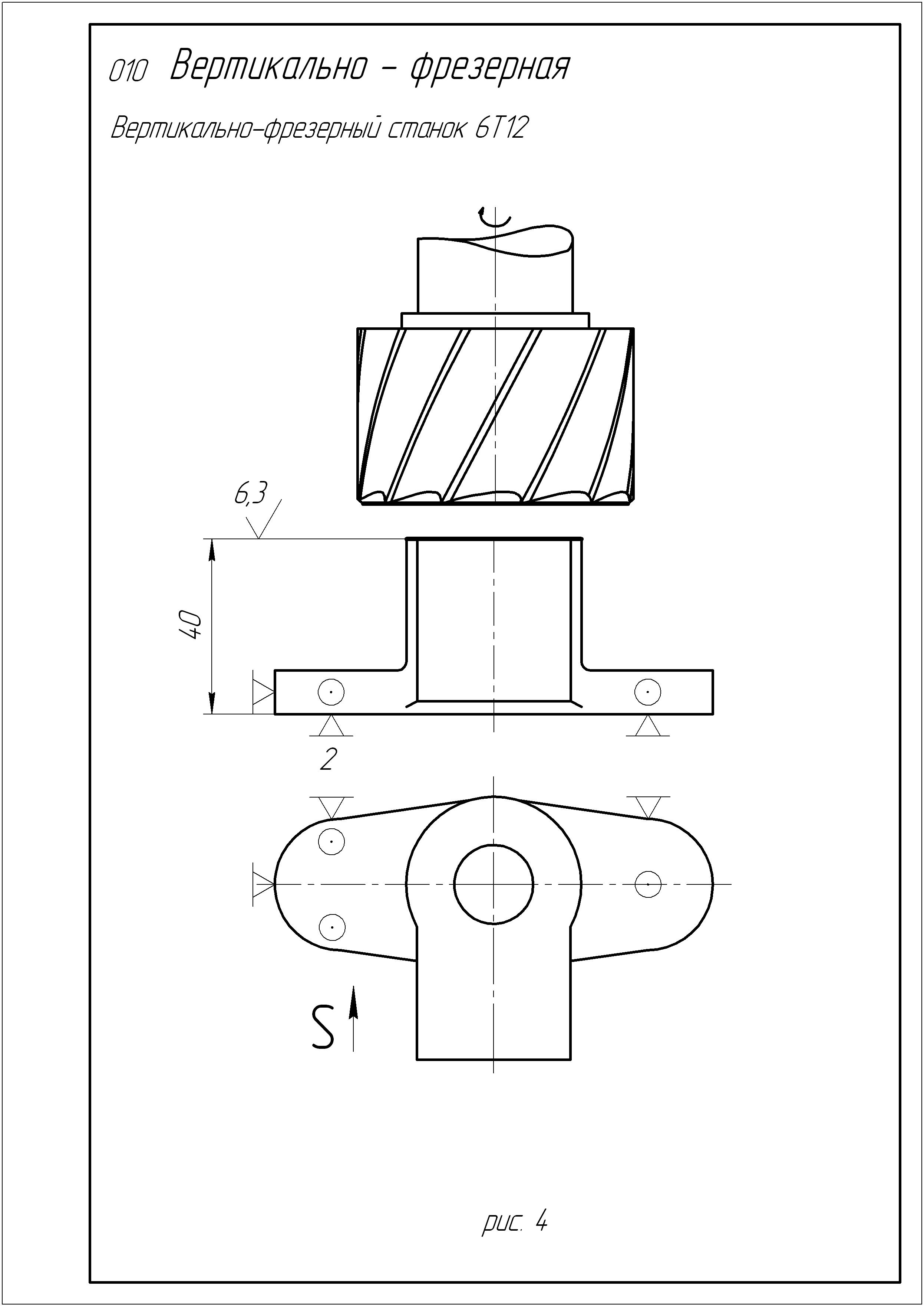 Операция 010 Вертикально-фрезерная Оборудование: Вертикально-фрезерный станок 6Т12 (N=7,5 кВт, η=0,8) Инструмент: Торцевая насадная фреза из быстрорежущей стали Р6М5 63 с числом зубьев Z=8 по ГОСТ 9304-69. (Фреза 2210-0081 ГОСТ 9304-69). Фрезерование поверхности Б. Шероховатость этой поверхности Ra=6,3 мкм, что позволяет обработать её за один технологический переход (рис.4).