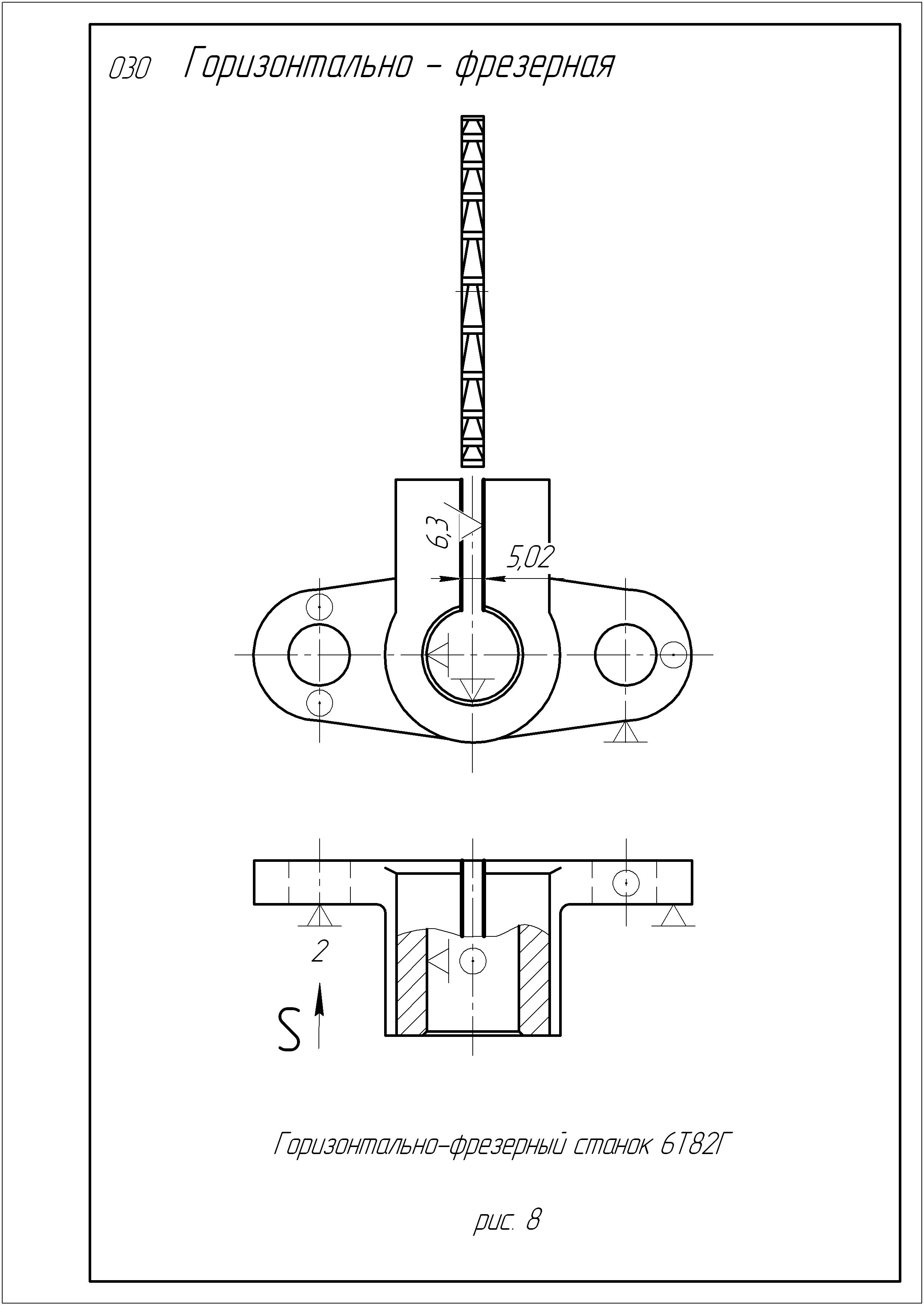 Операция 030 Горизонтально-фрезерная Оборудование: Горизонтально-фрезерный станок 6Т82Г (N=7,5кВт, η=0,8) Инструмент: Дисковая трёхсторонняя фреза из быстрорежущей стали Р6М5 80 мм с числом зубьев z=18 (Фреза 2240-0393-Р9 ГОСТ 3755-78). Фрезеруем паз выдержав необходимые размеры (рис.8).