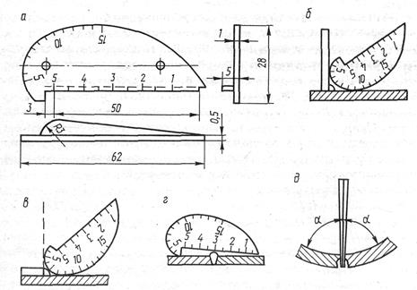 Геометрические параметры швов измеряют с помощью шаблонов и измерительных инструментов (рис. 10)