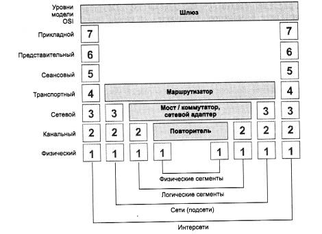 Протоколы реализуются не только компьютерами, но и другими сетевыми устройствами - концентраторами, мостами, коммутаторами, маршрутизаторами и т. д. Действительно, в общем случае связь компьютеров в сети осуществляется не напрямую, а через различные коммуникационные устройства. В зависимости от типа устройства в нем должны быть встроенные средства, реализующие тот или иной набор протоколов.