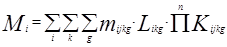 ПКijkg - произведение коэффициентов влияния "n" факторов на выброс i-го вредного вещества автомобилем j-ой группы k-ro класса с g-ым типом двигателя.