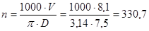 Выбираем частоту вращения по станку: = 80 об/мин.