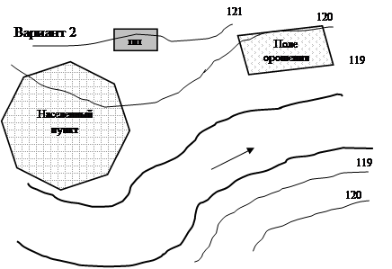 В графической части выполняется 3 варианта генплана населенного пункта, промышленного предприятия и полей орошения для 3 схем водоснабжения и водоотведения с указанием расчетных расходов.