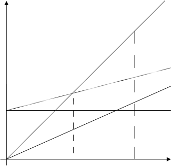 Внаслідок проведеної роботи зменшуються змінні витрати на виробництво та реалізацію продукцію ( ) і зростає обсяг збуту ( ) при такому рівні ціни. Постійні витрати за рахунок деяких заходів можуть знижуватись, але в цілому активізація маркетингової діяльності (інтенсивна реклама, створення « пабліситі ») потребують додаткових постійних витрат ( ).