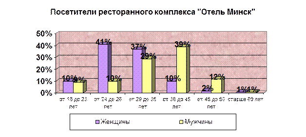 Таким образом, потенциальным посетителем ресторанного комплекса «Отеля «Минск» является мужчина в возрасте от 29 до 45 лет.