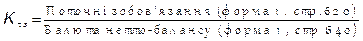 (коефіцієнт платоспроможності) –– показує можливість готівкою грошовими ресурсам своєчасно погашати свої платіжні зобов'язання: