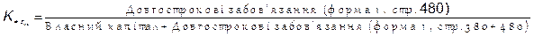 –– показує, яка частина активів підприємства сформувалася за рахунок позикових засобів довгострокового та короткострокового характеру: