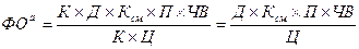 Фондоотдача основных средств (ФО) определяется отношением стоимости произведенной продукции (ВП) к среднегодовой стоимости основных средств (ОПФ).