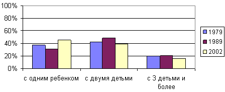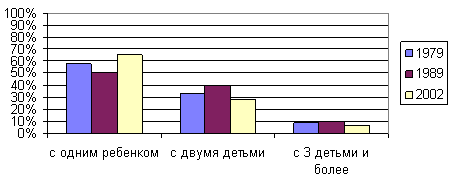 Сокращается среднее число детей в семье (1,63). Снижается число многодетных семей. Примерно 2/3 семей имеют детей, а остальные — либо молодые супруги, либо пожилые пары.