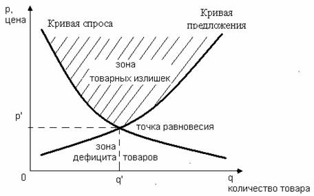 ). При достижении уровня товарных запасов по каждому виду товаров в некотором объеме q‘, можно с полной уверенностью утверждать, что все товары будут полностью реализованы. Рациональное управление товарными запасами достигается в точке равновесия спроса и предложения.