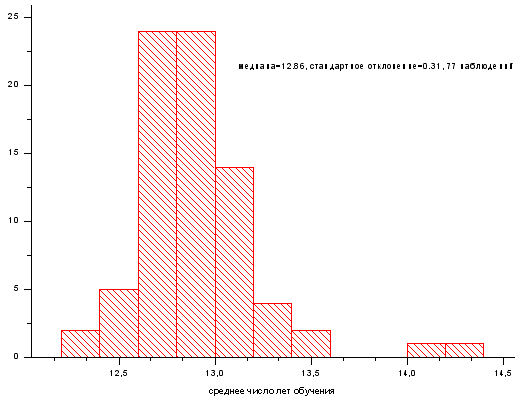 | Рисунок 2. Распределение регионов РФ по средней продолжительности обучения рабочей силы, 2000-2004 гг. |