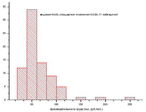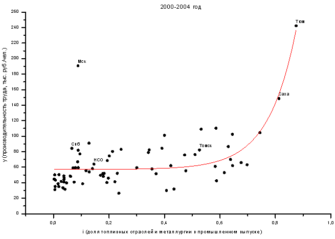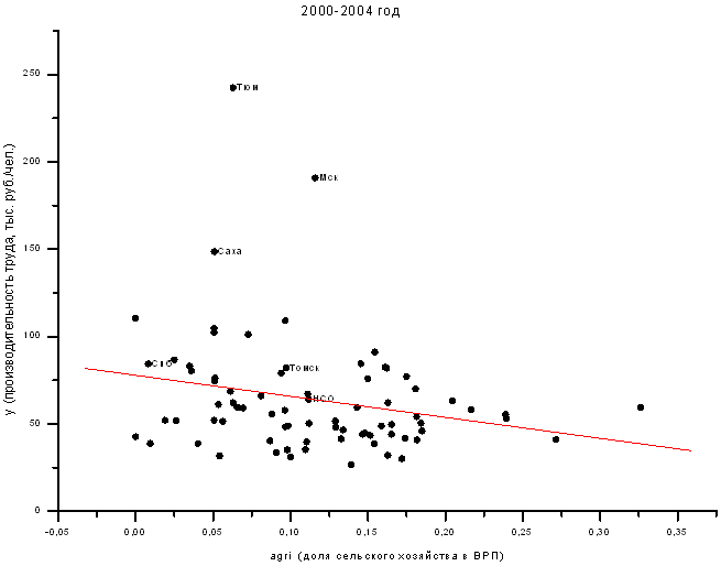| Рисунок 3. Распределение регионов РФ по средней производительности труда, 2000-2004 гг. |