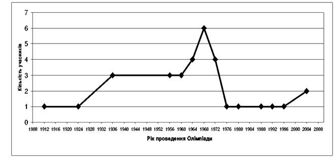 Рис. 1. Динаміка участі львівських легкоатлетів у Іграх Олімпіад