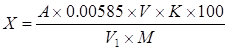 – количество фильтрата, взятого для титрования (мл); М – навеска фарша ( г); 0,00585 – количество граммов хлористого натрия, соответствующее 1 мл 0,1Н раствора азотнокислого серебра; К – поправка к титру раствора азотнокислого серебра.