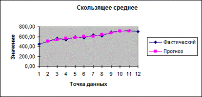 Расчет скользящей средней, полученной на основе трёхчленной скользящей суммы.