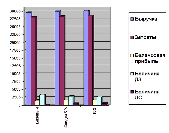 Из данных таблицы видно, что при предоставлении скидки покупателям и заказчикам на выполненные работы и оказанные услуги, даже в размере 5ти %ов предприятие будет иметь значительный приток денежных средств. Кроме того, как уже упоминалось ранее, предприятие может (и должно):
