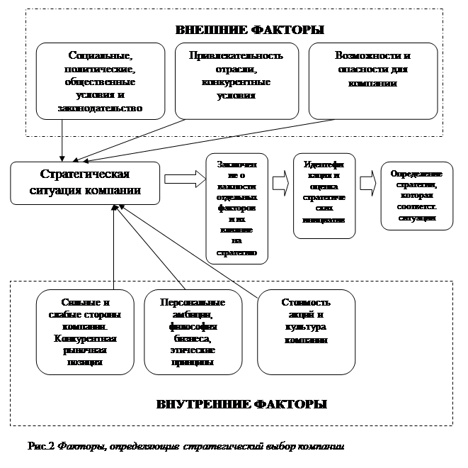 Однако стратегии, единой для всех компаний, не существует, так же как и не существует единого универсального стратегического управления. Каждая фирма уникальна в своем роде, поэтому и процесс выработки стратегии для каждой фирмы уникален, так как зависит от позиции фирмы на рынке, динамики ее развития, ее потенциала, поведения конкурентов, характеристик производимого ею товара или оказываемых ею услуг, состояния экономики, культурной среды и еще многих факторов. Таким образом для того чтобы выработать стратегию для конкретной фирмы первым делом нужно провести стратегический анализ ее внутренней и внешней среды. Данной проблеме и посвящена эта курсовая работа.