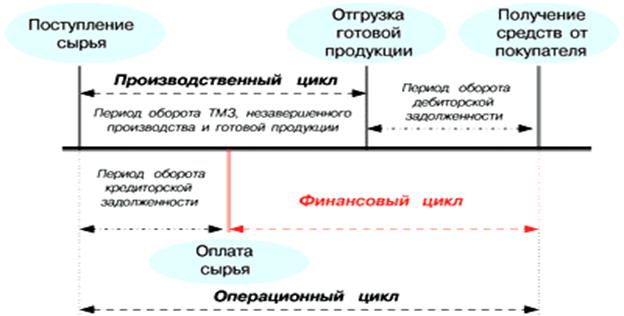 Финансовый цикл (цикл денежного оборота) предприятия представляет собой период времени между началом оплаты поставщикам полученных от них сырья и материалов (погашением кредиторской задолженности) и началом поступления денежных средств от покупателей за поставленную им продукцию (погашением дебиторской задолженности).