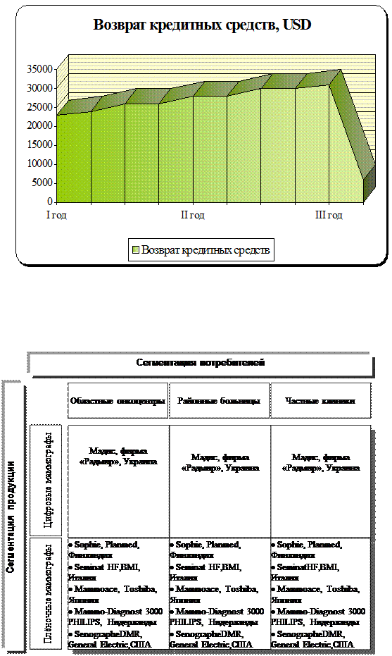 · При таком развитии ценовой стратегии фирмы ещё в сроках возврата кредита станет возможным создание наиболее привлекательных условий для потребителей с низкой покупательной способностью, что позволит активно работать на рынках рентгенографической продукции Украины и стан СНГ;