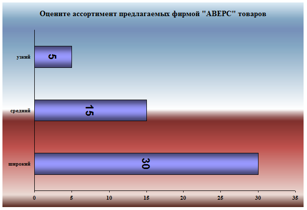 6. Оцените ассортимент предлагаемых фирмой ООО «АВЕРС» товаров?