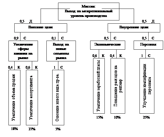 Согласно построенному дереву целей организации самой реальной и осуществимой целью в ближайшее время для неё является увеличение ассортимента.
