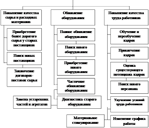 Конечная цель управленческого решения – повышение качества выпускаемой продукции. Проблема и цель – повышение качества продукции в течение полугода.