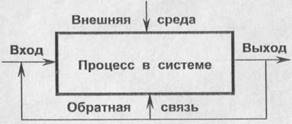 Обратная связь характеризует различную информацию, поступающую от потребителей к лицу, принявшему решение (к «процессу»), или к лицу, от которого поступила информация по решению проблемы («вход»). Поступление информации обратной связи может быть связано с некачественным решением, дополнительными требованиями потребителей об уточнении или доработки решения, появлением новшеств и другими факторами.