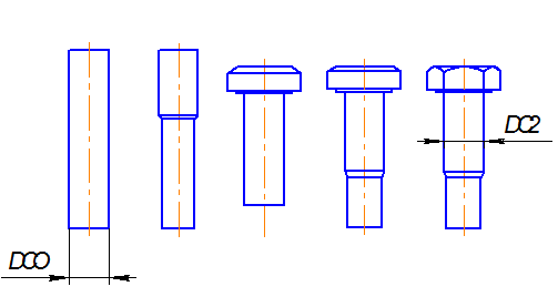 б) болты и винты с диаметром гладкой части стержня приблизительно равным среднему диаметру резьбы. Эти болты для улучшения центрирования стержня в отверстии скрепляемых деталей имеют направляющий подголовок длиной не менее половины диаметра.