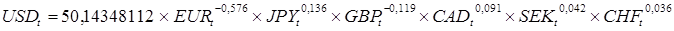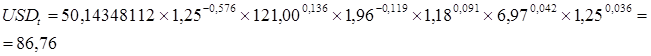 Використовуючи дані попередньої задачі, обчисліть значення індексу долару (USDX) станом на 31.01. 2007 р. Курс євро до долару США приймемо рівним 1,25.