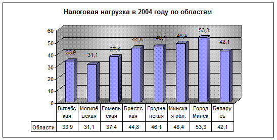 4. По мере совершенствования налоговой нагрузки, сокращения количества обязательных платежей в бюджет и снижение их ставок, уровень реальной налоговой нагрузки до 2003 года снижается. В период с 2000 до 2002 года происходит постепенное снижение налогового бремени за счёт уменьшения платежей из выручки и применения нулевой ставки налога на добавленную стоимость при экспорте продукции. Значительное увеличение налоговой нагрузки на экономику наблюдается, начиная с 2003 года, когда налоговая нагрузка увеличилась с 39,7% в 2002 году до 40,7 в 2003году и составила 42,1% в 2004 году, в 2005 году прогнозируется увеличение налоговой нагрузки.