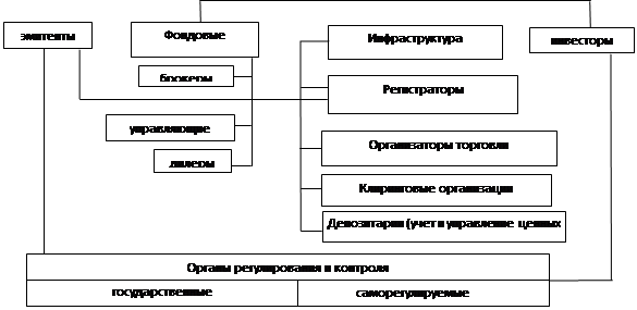 - органы государственного регулирования и надзора (это может быть самостоятельная Комиссия по ценным бумагам, Минфин, Центральный банк, смешанные модели государсвенного регулирования и другие государственные органы );