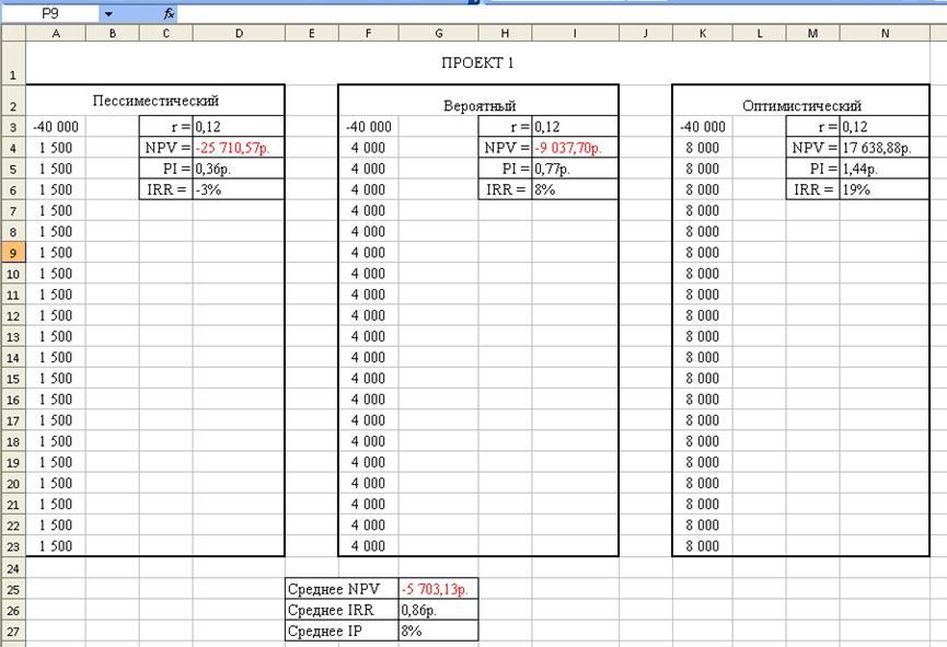 В среднем получаем, что проект 1 не эффективен, т.к.