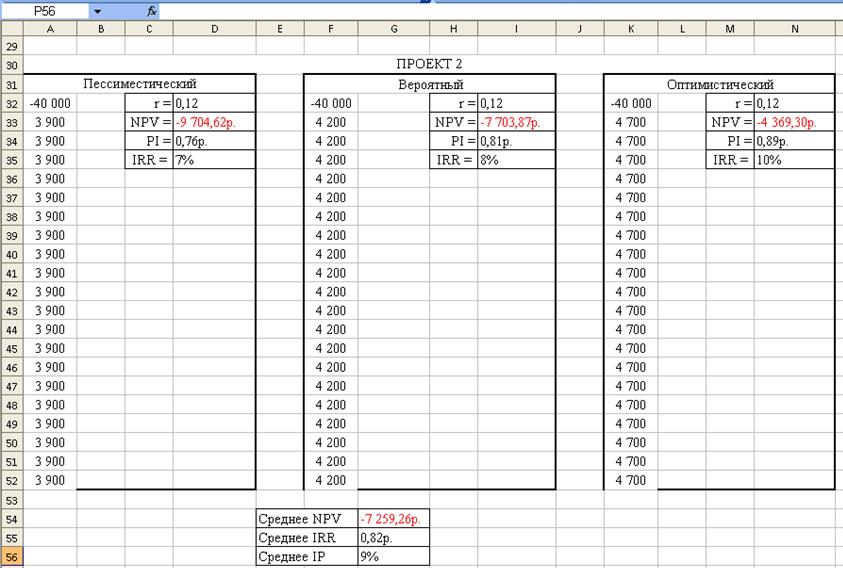 1. Чистая приведенная стоимость равна = -7 703,87р., значит, мы отклоняем этот проект, т.к. этот проект не принесет дополнительного дохода на вложенный капитал.