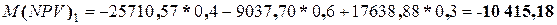 Ожидаемые значения чистой приведенной стоимости по проекту №1: