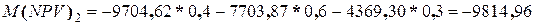 Ожидаемые значения чистой приведенной стоимости по проекту №2