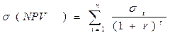 Стандартное отклонение потока платежей от ожидаемого значения в периоде t