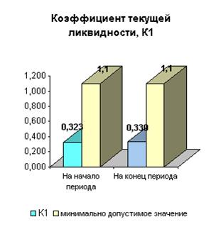 | - коэффициент текущей ликвидности на конец отчетного периода в |