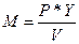 Современная трактовка количественной теории основана на понятии скорости обращения денег в движении доходов, которая определяется как:
