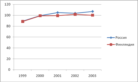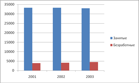 Вывод: По сравнению с 2001 годом в 2002 году численность занятых увеличилась на 0,2 %, а вот в 2003 году уменьшилась на 0,9%. Численность безработных с каждым годом увеличивается в среднем на 11%, из чего можно сделать вывод, что общая тенденция в сфере безработицы отрицательна, поскольку темп роста безработицы превышает темп роста занятых.