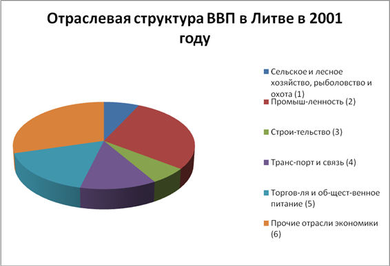 Рис. 7. Отраслевая структура ВВП в Литве в 2001 году