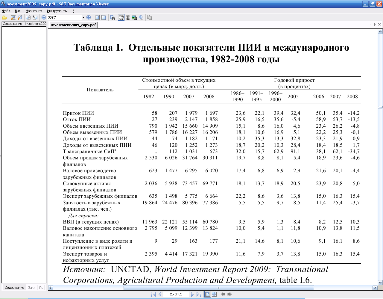 Большую долю в структуре ПИИ занимают финансовые услуги – 26%, бизнес-услуги составляют 15%, инвестиции в добывающую отрасль – 13%, в производственную отрасль – 9%, в химическую отрасль – 8%, в транспортные и телекоммуникационные услуги – 7%, в прочие виды услуг – 22%. Формы участи ТНК заметно меняются по отраслям. Телекоммуникации являются единственной отраслью инфраструктуры, в которой ПИИ являются доминирующей формой выхода ТНК на рынок развивающихся стран и рынок с переходной экономикой. Отдельные показатели ПИИ и международного производства, 1982–2008 годы представлены на рисунке 4.4 [28].  Рисунок 4.4 – Показатели ПИИ и международного производства, 1982-2008 года