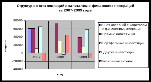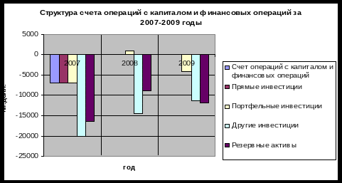 Рисунок 4.6 – Структура счета операций с капиталом и финансовых операций Австралии за 2007–2009 годы (млн. долл.)