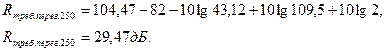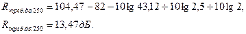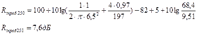 звукоизолирующая способность перегородки при частоте 250 Гц.