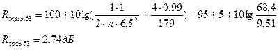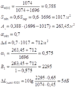 3. Найдем величину возможного максимального снижения уровня звукового давления в расчетной точке при применении выбранных звукопоглощающих конструкций при частоте 4000 Гц.