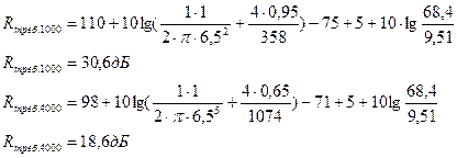 По таблицам выбираем материал конструкций для всех частот: Обыкновенная филенчатая дверь без уплотняющих прокладок. Материал конструкции стен: железобетонная стена толщиной 100 мм.