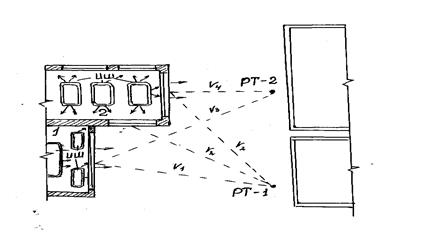 2) выбор точек в помещениях или на территориях на которых производится акустический расчёт;