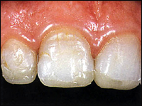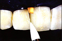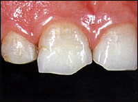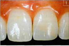 При нанесении композита на значительную поверхность эмали — при гипоплазии, эрозии, отколе части коронки необходимо производить вертикальное раскрытие эмалевых призм. Это несколько символическое выражение подразумевает снятие тонкого бесструктурного слоя эмали, которым покрыты пучки эмалевых призм, что создает более благоприятные условия для фиксации композита.