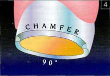 Маленькая фаска обеспечивается толщиной алмазного бора шаровидной формы, а граница в 90° должна обеспечиваться алмазным бором с конусообразной рабочей частью. Поверхность должна быть обработана алмазными борами с зернистостью в 40 микрон и отполирована силиконовыми головками для полного уничтожения призм, не поддерживаемых эмалью.